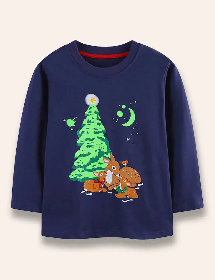 عيد الميلاد متوهجة الغزلان كم طويل تي شيرت