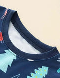 بيجامة زرقاء مطبوعة بشجرة عيد الميلاد